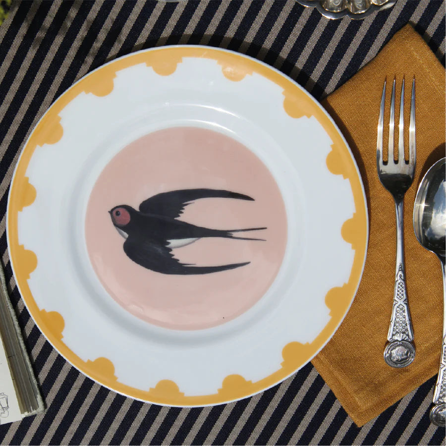 Crafted by expert mother-daughter team, Catriona and Flora, this set of 4 Swooping Swallow Bowls features Catriona's folk art style and Flora's design expertise. Made in Britain with fine bone china from Staffordshire, these bowls are both dishwasher safe and beautifully designed.