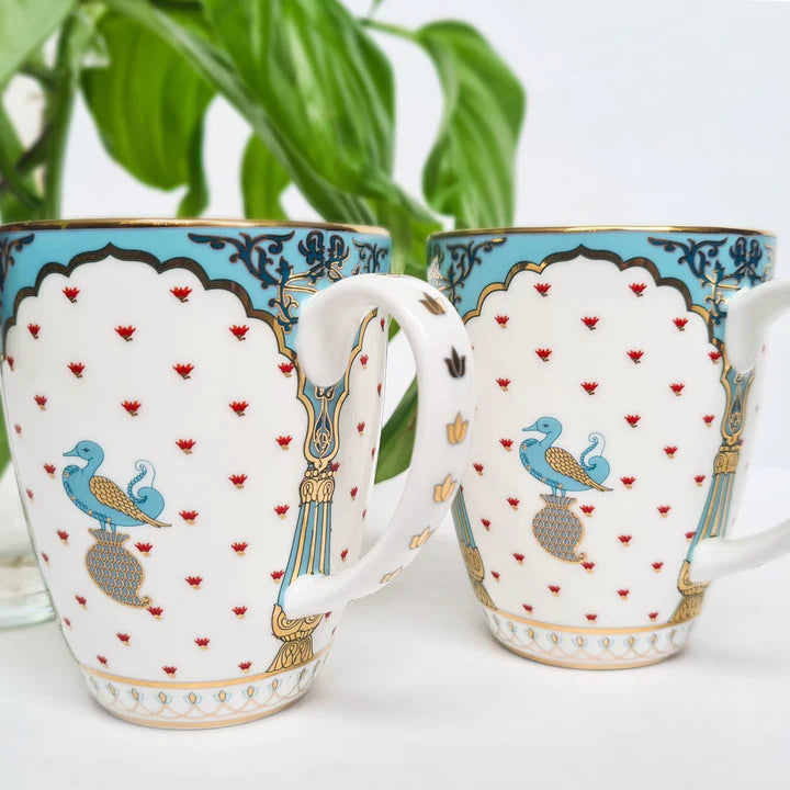 Made from sturdy, sleek & lightweight fine bone china. This product have been hand decorated with hues of turquoise blue and floral motifs inspired by the interiors of Mysore Palace and have been highlighted with 24-karat gold. They undergo three stages of firing and stringent quality check to attain this finish.
