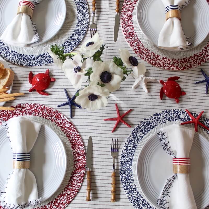 Instantly elevate your table setting with the rich, vibrant hues and exquisite beadwork of these eye-catching placemats. The strong, distinctive silhouette and timeless charm make them a must-have for any occasion. Dimensions: 15″.