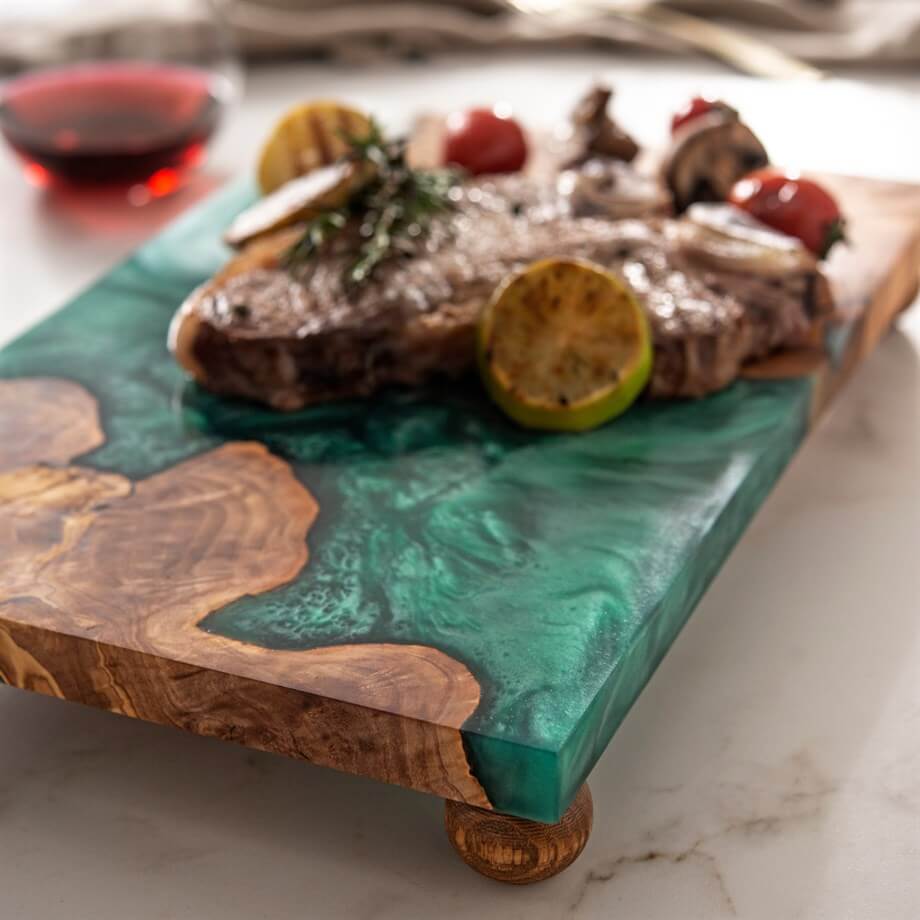 Handcrafted Epoxy & Olive Wood Sea Blue Serving Board