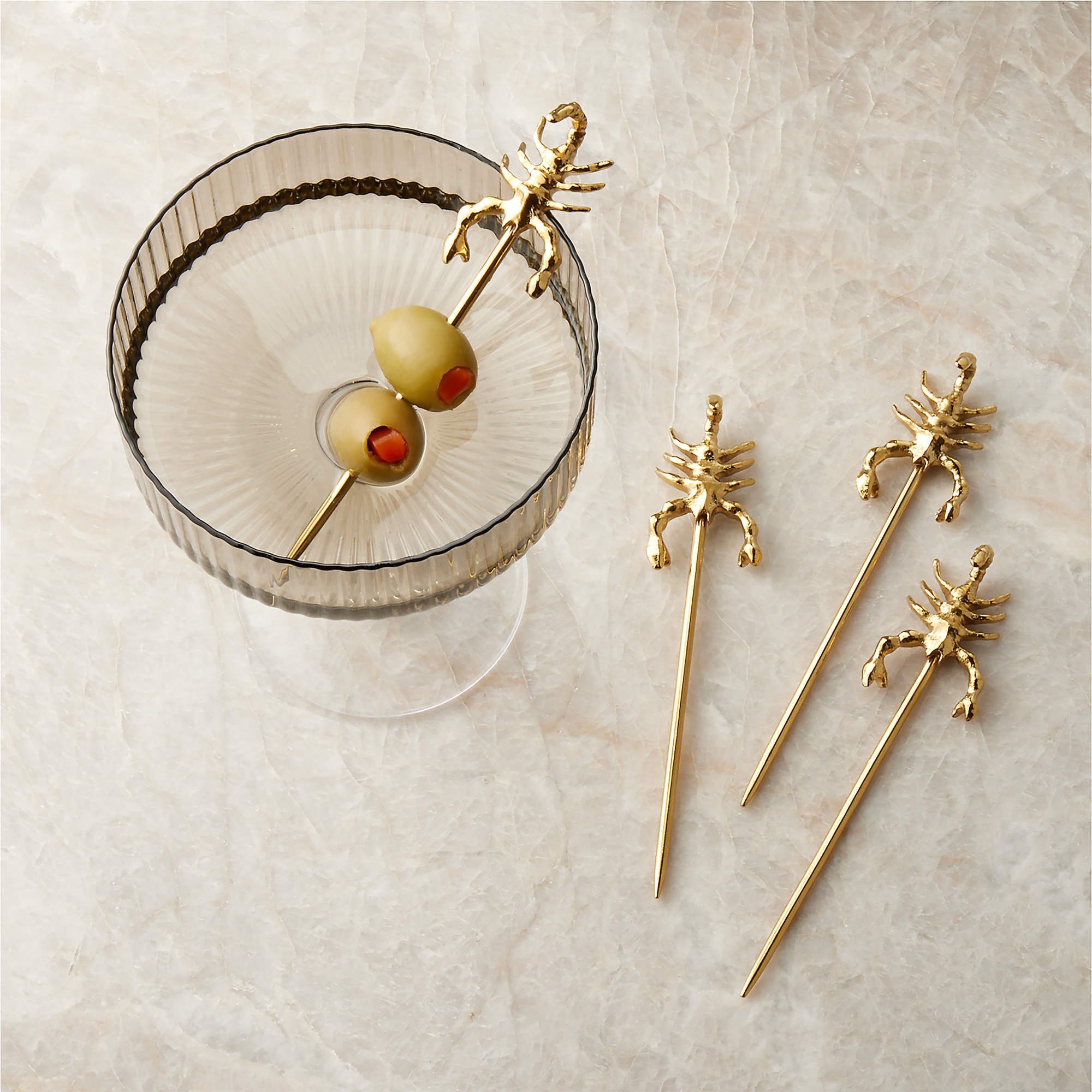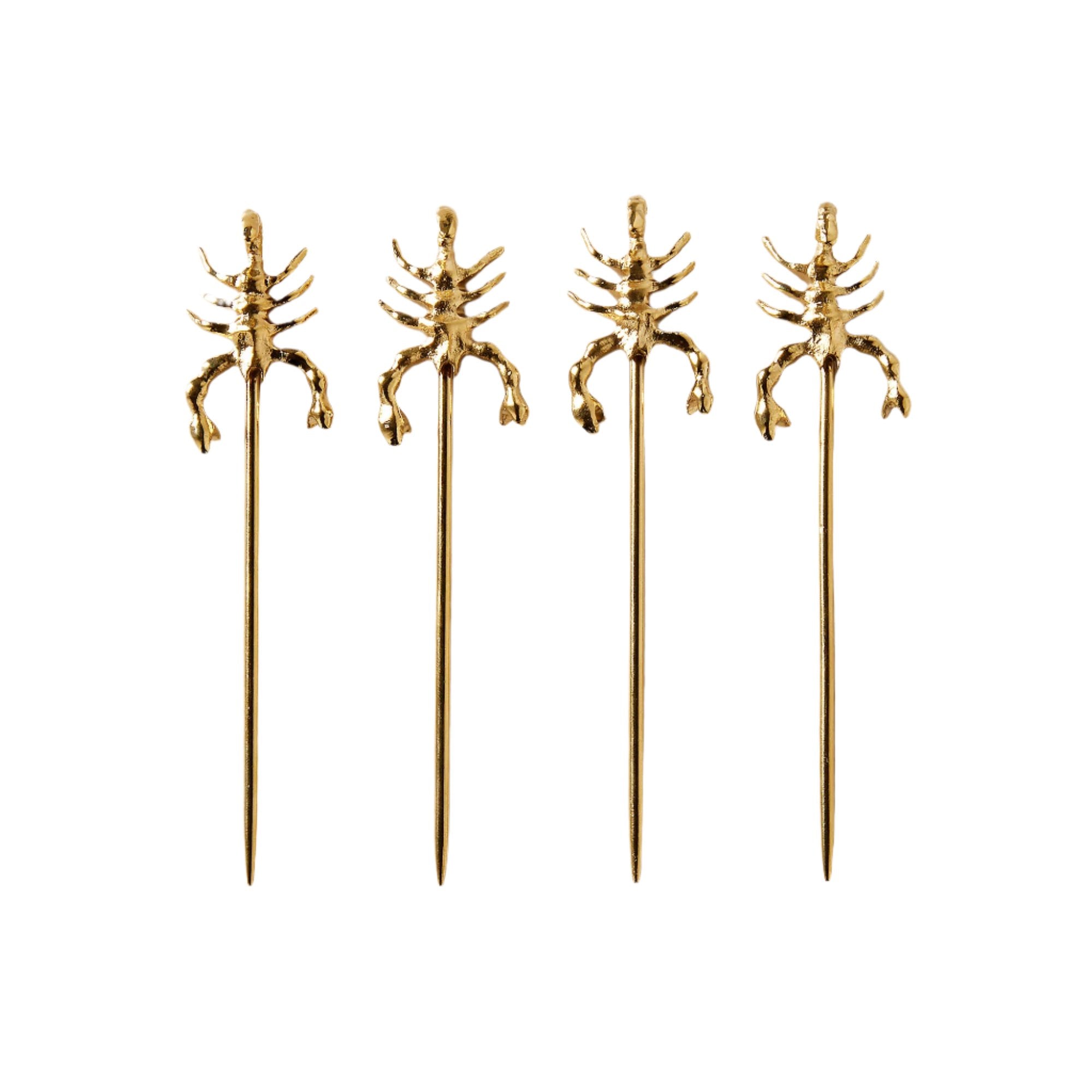 Cast brass scorpion cocktail picks add a playful garnish to cocktails and canapes. This set of four makes a great gift.