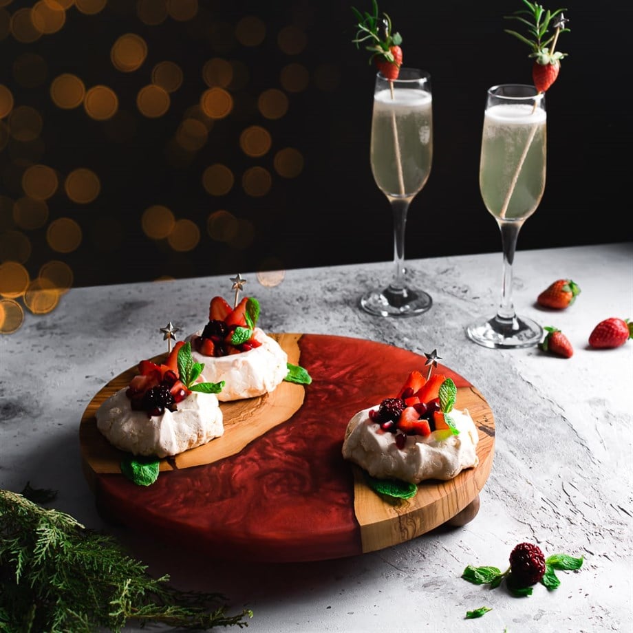 Handcrafted Epoxy & Olive Wood Red Circular Serving Board